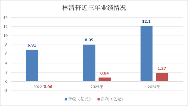 在大单品的推动下,林清轩公司的业绩随之突飞猛进。据公司招股书,2022年至2024年,公司总收入分别为人民币6.91亿元、8.05亿元和12.1亿元,复合年增长率达32.3%。在盈利方面,2022年公司净亏损593万元,但2023年成功扭亏为盈,实现净利润8452万元,2024年净利润进一步大增至1.87亿元。